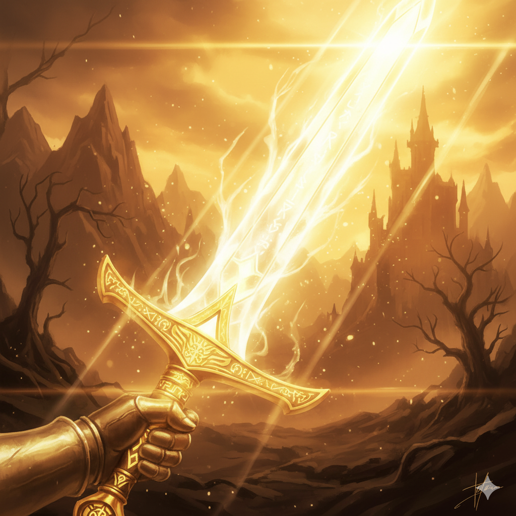 A Napfény Penge egy áttetsző kristálypengéjű kard, mely arany és fehér fényt áraszt, mintha maga a napfény szilárdult volna meg benne. A markolat ősi naprúnákkal van díszítve, és melegséget sugároz, mintha a nap érintené meg a viselőt. A kard közelében soha nincs sötétség — a világ mintha nappalba fordulna. Bár első pillantásra csak egy különleges fénykardnak tűnik, valódi ereje csak azok számára tárul fel, akik tiszta szívvel és igazság iránti elkötelezettséggel járják útjukat. A Napfény Penge nem csupán fegyver, hanem próbatétel, kulcs és örökség — egy relikvia, mely a világ sorsát is képes megváltoztatni.