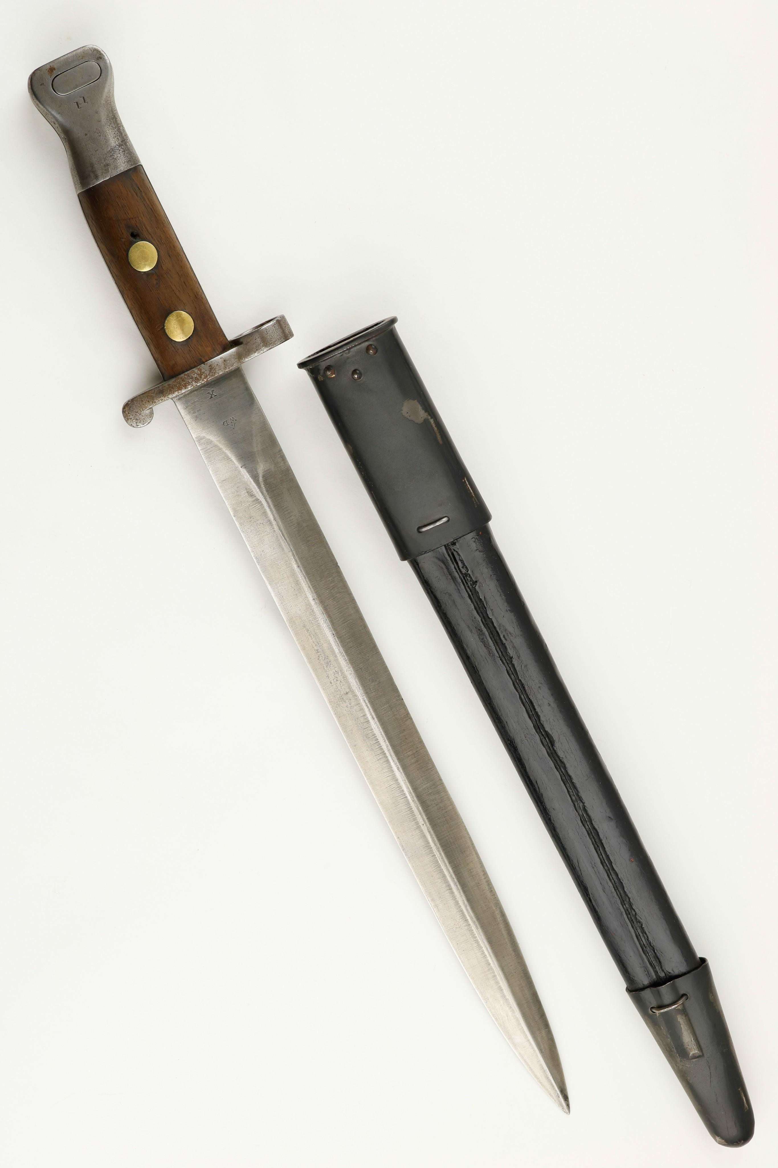 This is a knife that can be slotted onto the barrel of a musket or rifle and locked in place.