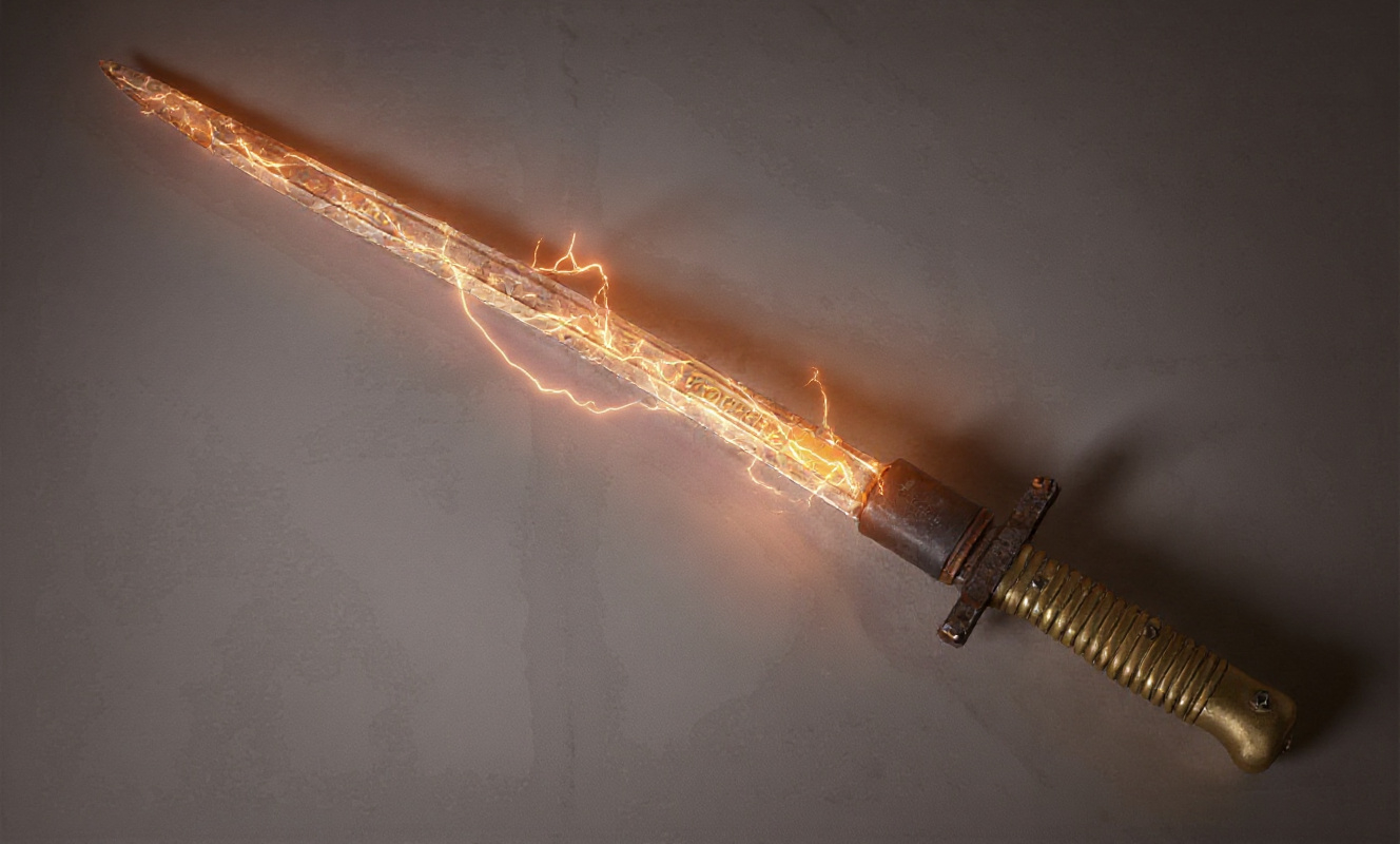 Electric Shock. On hit you can choose to use a Charge to add 1d4 Lightning damage and the creature makes a Dexterity Saving Throw DC 12, on failure they lose their reaction and their movement is halved until the end of their next turn. Bayonet. When attached to a firearm the damage die increases to 1d8 and the melee range increases to 10 ft.| Type | Damage | Damage Type | Mastery | Range |