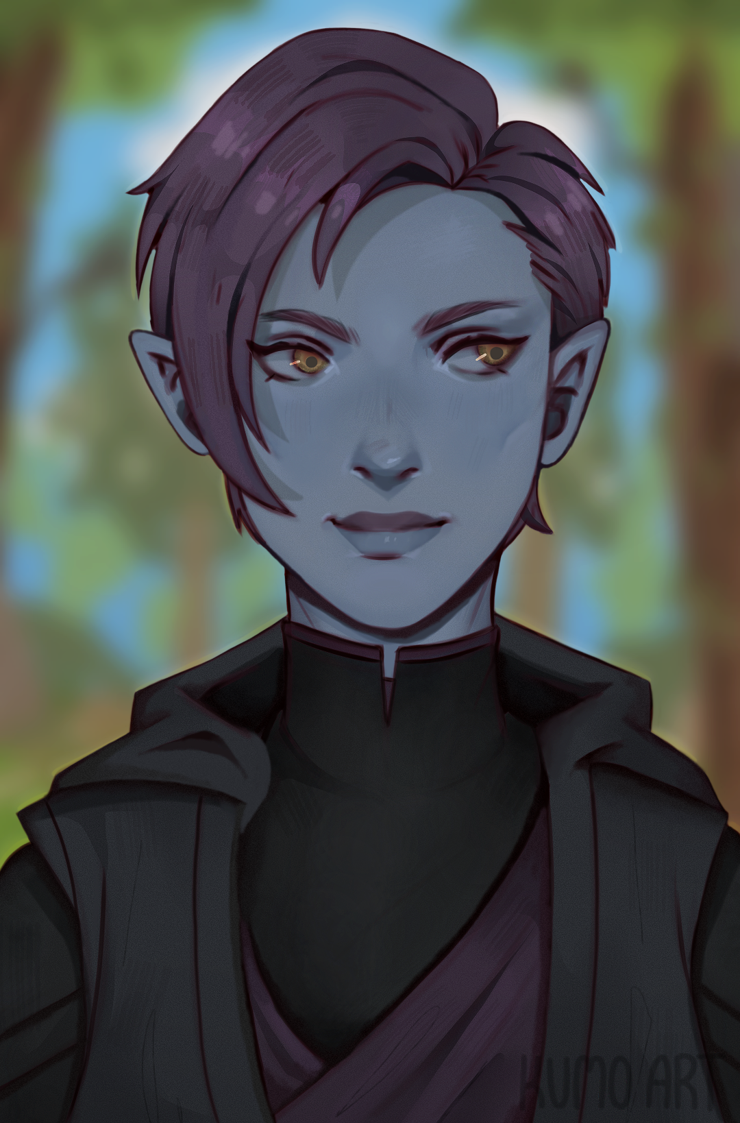 That lengthy segue was to say that after being on Tumblr a while, I found several artists whose styles I adore, who create BG3 fanart and their commission fees are very reasonable. Thus, I've commissioned a few pieces of Nyx and I've been waiting with bated breath for the interlude to share them with you:
